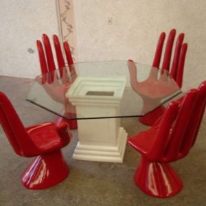 Base y sillas en fibra de vidrio
